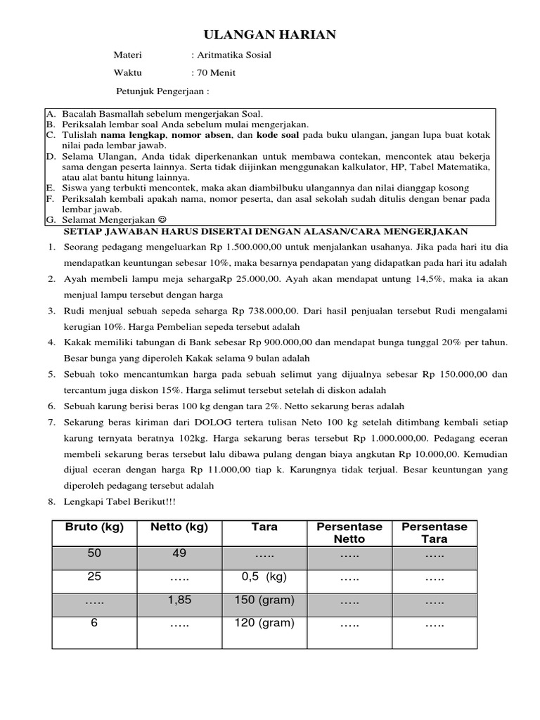 Check spelling or type a new query. Lengkapi tabel berikut bruto netto tara persentase neto dan persentase tara. Maybe you would like to learn more about one of these? We did not find results for: